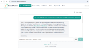 The tool showed no credible evidence confirming that the U.S president shifted his focus to Uganda because of President Museveni and his son Muhoozi. Instead, the available verified information from other fact-checking organisations like Pesa Check and Africa Check confirms verified claims about Trump and Uganda, which were either altered or there was no evidence to support it.
