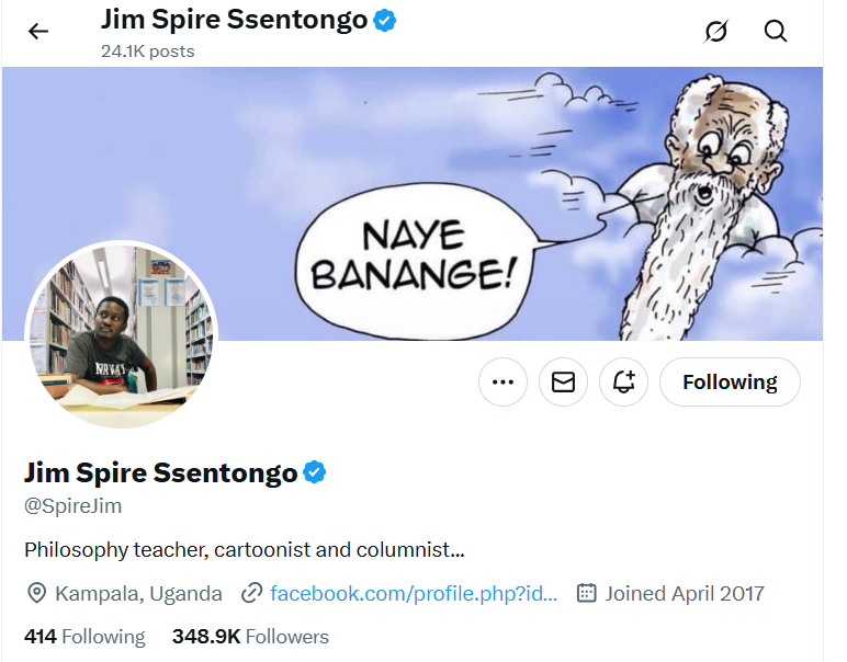Further more, Jim Spire Ssentongo’s X account is verified with a blue checkmark to it.