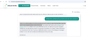 We also used the info Verifier tool where we asked the chatbot “Did Bobi Wine call Burkina Faso president about the raid on his home?” where it responded that there is no verified evidence that Kyagulanyi called Burkina Faso’s president about a raid on his home.