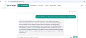 Verification of the claim using the Info Verifier tool found no credible information confirming that President Museveni held a specific interview explaining how he won the election in the manner presented in the TikTok.