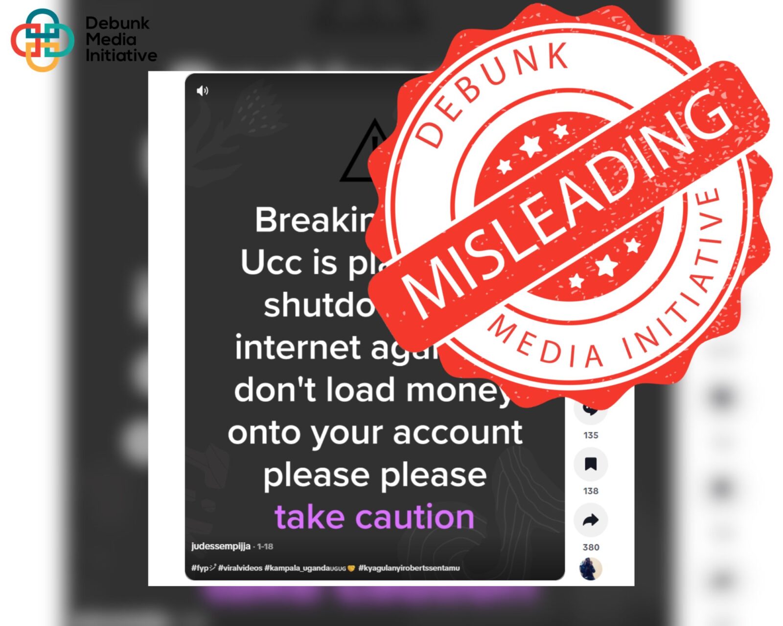 A TikTok video text circulating on social media claims that UCC intends to shut down the internet again and warns people not to load money into their Mobile Money Accounts.