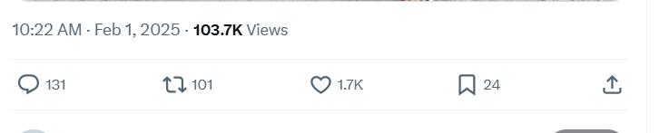 Unfortunately, the post garnered 103.7K views, 1.7K likes, 101 reposts, and 131 comments.