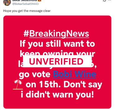 UNVERIFIED: Viral Post Claims Ugandans Will Lose Land After 2026 Unless They Vote Bobi Wine
